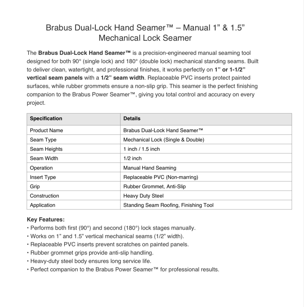 Brabus Dual-Lock Hand Seamer™ | Manual 1” & 1.5” Mechanical Lock Seamer