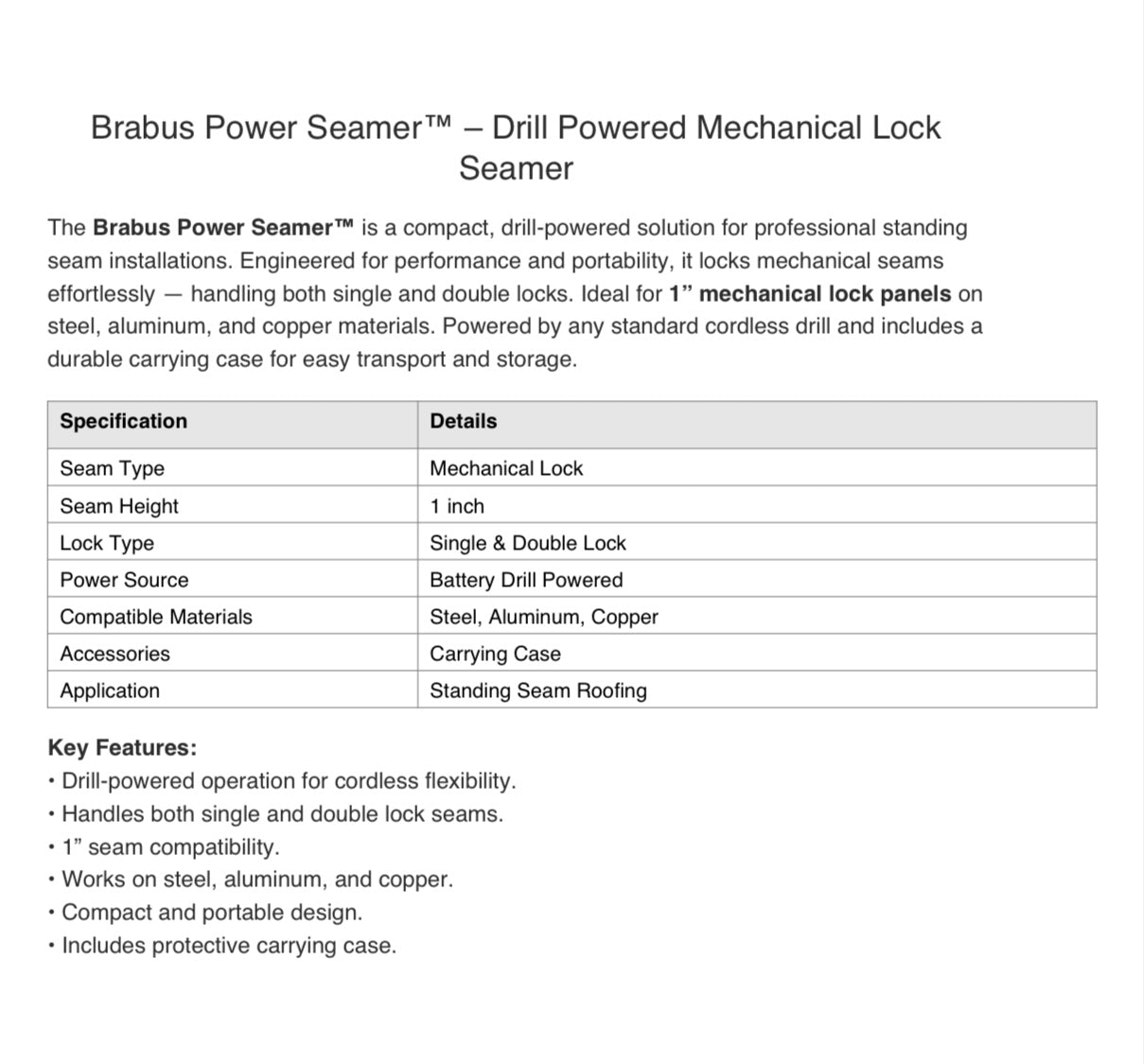 Brabus Power Seamer™ | Drill Powered Mechanical Lock Seamer